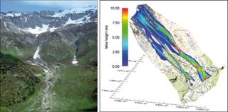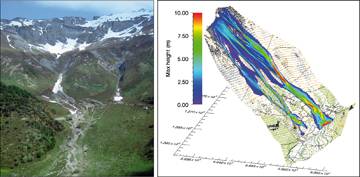 RAMMS::AVALANCHE模型用来模拟复杂地形中流动的雪崩。该模型在瑞士被广泛用于雪崩危险研究。RAMMS::AVALANCHE模型结合了最先进的数字解决方案和有帮助的输入特性以及友好的可视化工具,许多输入输出特征都是经过优化的,使用户能够轻松修改危险场景并控制模拟结果。该程序的核心是一种有效的二阶数值解,即深度平均雪崩动力学方程。在三维数字地形模型中,计算了雪崩流速和速度。使用GIS类型绘图功能可以轻松地指定单个或多个发布区域。用户可以获得模拟的有用的概览信息,包括发布区域(平均斜率、总容量)、流量行为(最大流量和高度)和停止行为(质量流量)的重要信息。地图和遥感图像可以叠加在地形模型上,以帮助确定输入条件,并根据已知事件校准模型。RAMMS::AVALANCHE模型现在已经在全球70多个地方使用,该软件已经成功应用于高山地区,如阿尔卑斯山、喜马拉雅山、安第斯山脉、落基山脉、塔塔雷和其他地区。