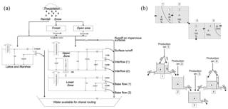 CEQUEAU 模型是将流域的物理特征以及空域的变化考虑在内的对用户友好的分布式确定性模型。该模型主要由两个函数组成。生产函数和传递函数,生产函数通过不同的连通水库表示,主要是针对土壤中垂直水流的产生。传递函数主要针对通道路由,用物理数据来确定排水因素。