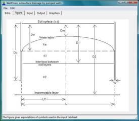WellDrain 模型使用泵井计算了垂直排水系统中水井的间距、形状、深度和水位。与排水管道一样,它允许有各种不同性质的含水层,此外,还允许有充分或部分渗透的水井。有关农田地下水位和土壤盐分的地下排水可以通过水平和垂直排水系统来完成。水平排水系统是一种使用露天沟渠或埋管排水的排水系统。垂直排水系统是使用泵井(开挖井或管井)的排水系统。这两种排水系统都有相同的用途,即水表控制和土壤盐度控制;都可以促进污水的再利用(例如灌溉),但水井提供了更大的灵活性;如果地下水的质量良好,而且盐度很低,那么再利用是可行的。