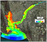EFDC(The Environmental Fluid Dynamics Code)模型是由威廉玛丽大学维吉尼亚海洋科学研究所(VIMS,Virginia Institute of Marine Science at the College of William and Mary)的John Hamrick等人开发的三维地表水水质数学模型,可实现河流、湖泊、水库、湿地系统、河口和海洋等水体的水动力学和水质模拟,是一个多参数有限差分模型。经过近20年的发展和完善,目前该模型已在大学,政府机关和环境咨询公司等组织中被广泛使用,并成功用于美国和欧洲其他国家100多个水体区域的研究,在我国已被应用于云南滇池水质模拟,重庆两江汇流水动力模拟、密云水库营养物模拟等以及内蒙古乌梁素海地区水体富营养化模拟等。 该模型系统包括水动力、泥沙、有毒物质、水质、底质、风浪等模块,模拟计算过程中首先完成流场计算,获得三维流速场的时空分布特征,在此基础上计算泥沙迁移、冲淤作用,进而模拟受粘性泥沙吸附影响的各水质变量动态变化过程。为更好的拟合研究区地形条件,模型在水平方向除可采用传统的 直角坐标外还可在水平向使用正交曲线坐标,垂直方向采用σ坐标。 EFDC水动力学模块可计算如下内容:流速,示踪剂,温度,盐度,近岸羽流和漂流。水动力学模型输出变量可直接与水质,底泥迁移和毒性物质等模块耦合,作为物质运移的驱动条件。同时EFDC也提供了与WASP等软件的接口,输出可供水质模拟使用的.HYD文件。EFDC泥沙模块可进行多组分泥沙的模拟,根据在水体里面的迁移特征把泥沙分为悬移质和推移质;悬移质根据粒径大小分为粘性泥沙和非粘性泥沙,进而还可细分为若干组。可根据物理或经验模型模拟泥沙的沉降、沉积、冲刷及再悬浮等过程。EFDC有毒污染物模块可以模拟各类型污染物在水体中的迁移转化过程,该模块需要研究者针对特定有毒污染物提供具体反应过程设定反应系数。EFDC的水质模块,主要模拟水体中以藻类生长为中心的各变量间相互关系。而底质模块模拟沉积物与水体之间的物质交换过程。