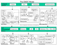 DNDC是农业生态系统中碳和氮生物地球化学的计算机模拟模型。该模型可用于预测作物生长、土壤温度和水分状况、土壤碳动力学、氮浸出以及微量气体的排放,包括一氧化二氮(N2O)、一氧化氮(NO)、氮气(N2)、氨(NH3)、甲烷(CH4)和二氧化碳(CO2)。