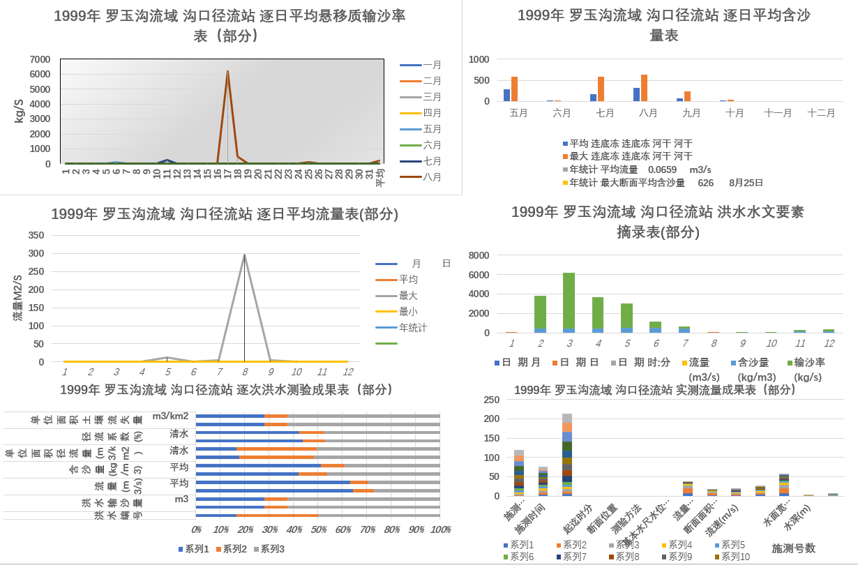 本数据集为1991-2000年黄土丘陵沟壑区第三副区罗玉沟流域径流泥沙观测站的观测数据。罗玉沟观测断面为自然梯形断面;径流观测采用浮标法测流速,流速面积法计算流量;泥沙取样与测流同步进行,取样次数与测流次数相同,采用水边一点法取沙样,置换法测含沙量。数据集包括实测流量成果表、洪水水文要素摘录表、逐次洪水测验成果表、逐日平均流量表、逐日平均含沙量表、逐日平均悬移质输沙率表。