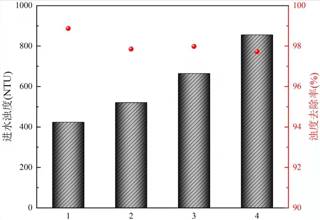 悬浮物的测定采用《水质 悬浮物的测定 重量法》(GB 11901);浊度采用WZS-186型号浊度仪进行测量。浊度测量前需要先用标准液进行标定,待标定结束后需要用蒸馏水进行调零,调零结束后将待测液放入浊度瓶中进行测量读取数据。 以实验室配水模拟实...
