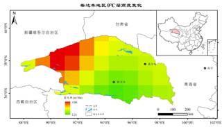 0℃层高度是大气探测的一个重要特性层,反映着大气对流层中下层的温度状况,该层的升降一定程度上影响山体地表:0℃线的升降,进而影响山区水的冻融过程。分析中国西部39个高空站规定层的高度和温度,计算夏季(6-8月) 0℃层的高度,进行Kriging插值,得到柴达木盆地夏季0℃层的高度分布图。