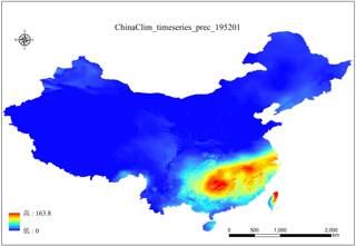 ChinaClim_timeseries 是中国 1952-2019 年期间的月度降水数据集,空间分辨率为 1km,该数据是基于气候学辅助插值(CAI)将月度异常面和基线气候学面(ChinaClim_baseline)叠加生成的。数据的比例因子为 0.1。