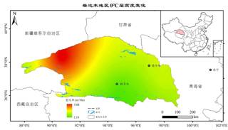 0℃层高度是大气探测的一个重要特性层,反映着大气对流层中下层的温度状况,该层的升降一定程度上影响山体地表:0℃线的升降,进而影响山区水的冻融过程。分析中国西部39个高空站规定层的高度和温度,计算夏季(6-8月) 0℃层的高度,进行Kriging插值,得到柴达木盆地夏季0℃层的高度分布图。