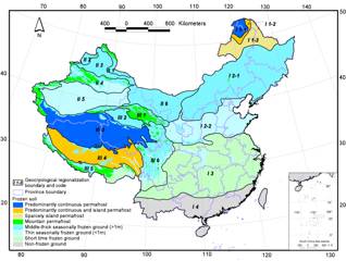 Geocryological regionalization and classification map of the frozen soil in China (1:10,000,000)