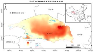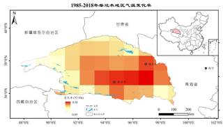 柴达木地区100 km分辨率气温变化率(1985-2018年)