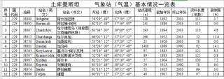 本数据集包含中亚地区(气象站点数:个,时间范围:年):哈萨克斯坦(27,1848-2003)、吉尔吉斯斯坦(33,1879-2003)、塔吉克斯坦(46,1881-2003)、乌兹别克斯坦(64,1875-2003)、土库曼斯坦(12,1883-2003)五国各气象站的多年季度平均气温、季度均温特征值及其发生时间。