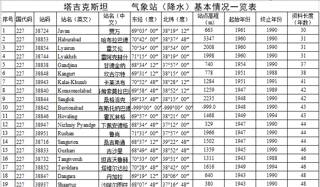 1877-2003年(部分年份)中亚五国气象站(降水)多年特征值统计数据