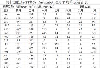 1883-2000年(部分年份)中亚地区土库曼斯坦逐月平均降水量数据