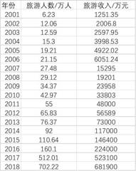 额济纳旅游人数和旅游收入数据集(2001-2018年)