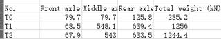 该数据集为桥梁抗滑安全分析和抗倾覆分析的基本参数,包含弹性支撑支座的性能参数,实测汽车荷载值,和所分析桥梁的相关参数,为本文分析桥梁整体抗滑失稳提供了数据。以此为依据建立了非线性有限元模型,分析结果表明倾覆事故开始时是支座的脱空,之后会发生桥梁的整体滑移。