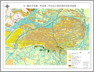 奈曼旗,库偏旗,科左后旗沙漠化类型图(1983年)