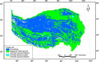 青藏高原冻土图(1:300万)(李树德和程国栋,1996)是中国科学院兰州冰川冻土研究所(今中科院寒区旱区环境与工程研究所)冻土工程国家重点实验室根据多年从事冻土考察研究的第一手资料及前人研究论文、文献、并详细研究与参阅了航空像片、卫星影像及青藏公路沿线多年冻土图(1:60)万(童伯良 等,1983)、祁连...