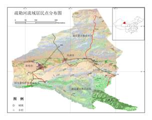 数据为天山北麓河流域居民点分布数据,包括天山北麓河流域内市、县、乡镇、村等级分布,数据主要有两个属性字段:Code(居民点编码)、Name(居民点名称)。