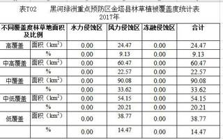 2013-2017年黑河绿洲国家级重点预防区林草植被覆盖度统计表数据集