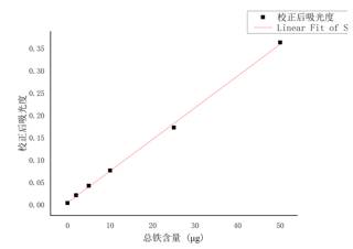 以铁锰作为模拟因子,采用Origin2019软件进行数值模拟,基于吸光度理论,分别对不同含量的铁、锰进行吸光度测试数据集共包含数据量为42个数据/组条。
