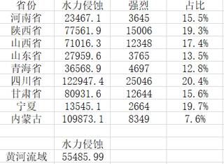 2015-2019年黄河流域省市极强度水蚀分布数据