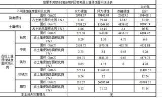 土壤侵蚀统计表,土壤侵蚀面积,各级土壤侵蚀强度面积及比例,水力侵蚀