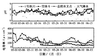 2002年7月与美国合作,在1号冰川4130米积累区建立了雪冰过程观测取样定位场。连续的观测采样工作于同年9月开始。采样频率为每周一次,表层雪样品取自雪坑顶部表层5cm处(包括新雪和沉积作用后的雪),整个雪坑中以每10cm间距取样。样品分析工作于天山冰川站实验室内完成,分析每个样品中主要的阴阳离子、PH值、...