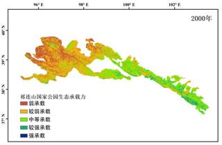 祁连山国家公园生态承载力空间分布图(2000-2018年)