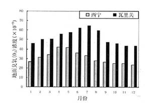 1994-2013年青海瓦里关地面臭氧浓度月均值