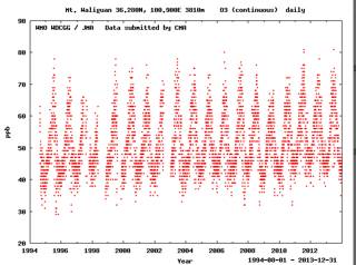 1994-2013年青海瓦里关地面臭氧连续采样数据
