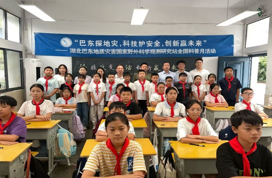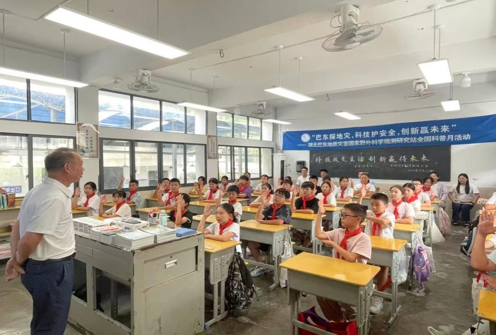 为进一步弘扬科学家精神、普及科学知识,中国地质大学(武汉)湖北巴东地质灾害国家野外科学观测研究站(以下简称“国家野外站”)的科普人员和志愿者一行8人,于2025年9月17日来到恩施州巴东县溪丘湾乡平阳坝小学,面向370余名库区师生举办了一场以“巴东探地灾,科技护安全,创新赢未来”为主题的全国科普月专题活动。活动共分为“科普专题讲座”、“科普知识有奖问答”、“小小科学家实验秀”等环节,用通俗易懂的语言和简易实验演示解读地质灾害前沿科技动态,帮助小学生们正确认识地质灾害,用科学的方法守护自己和身边人的安全。