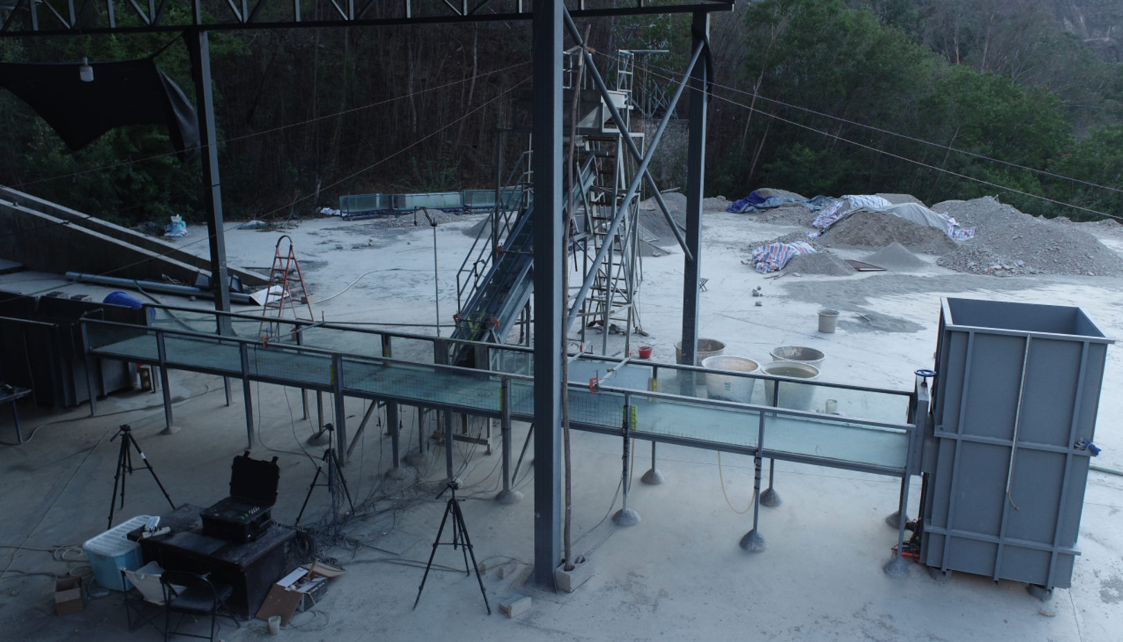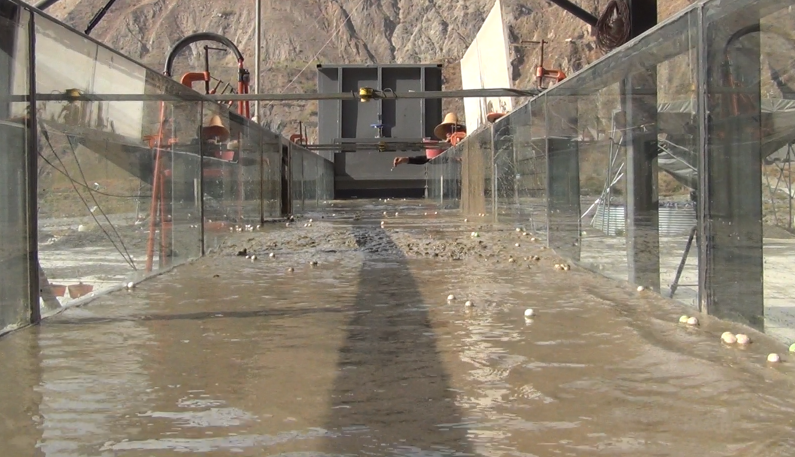 3月10日至4月24日,成都山地所硕士研究生周天佳来站开展泥石流堵江动力过程实验研究。实验发现当泥石流含有较多的粗颗粒时,泥石流进入主河后会形成较高的泥石流堰塞坝堵塞河流,引发上游较长时间的壅水,之后坝体发生漫顶溃决,而细颗粒较多时泥石流形成的坝体高度较小,壅水高度较小;当泥石流含水量较高时,泥石流以较快的速度进入主河并于对岸发生强烈碰撞形成堰塞坝,此种情况形成的堰塞坝坝体更宽、坝高更小,而较低含水率的泥石流可能会停积在主河中而不会到达对面而引起部分堵塞。研究成果可为泥石流入汇主河灾害链风险评估提供科学依据。