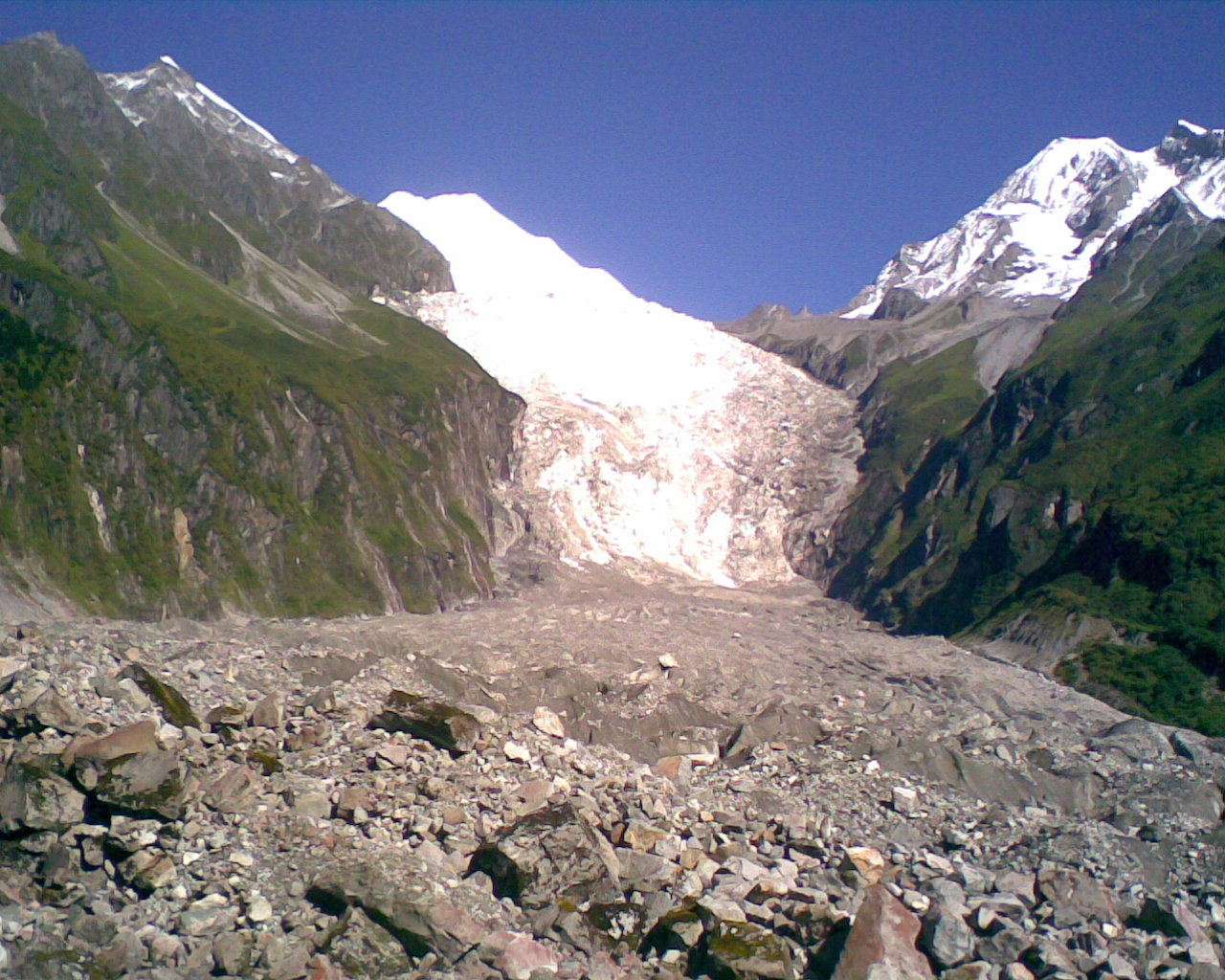 联合国环境规划署一份研究报告指出,专家们采用航测、卫星观测和实地考察等手段,对尼泊尔境内3252个冰川和2323个冰川湖以及不丹境内的677个冰川和2674个冰川湖进行了长达3年的观测,结果表明这些地区的气温比20世纪70年代增加1℃,喜马拉雅山地区冰川融化加快的事实又一次表明全球气候变暖是人类在未来几十年里面临的最大威胁。新西兰科学家对其境内48座冰川进行拍照和分析后形象地把冰川比喻为"银行",由于这些年来那里高气压盛行,西风减少,导致天气干燥,降雪明显减少,以致于"银行"入不敷出,因为冰川靠自然降雪来补充,以保持动态平衡,体现着冰川积累和消融的收支平衡。如果不利天气继续下去,那里的冰川还将继续萎缩。