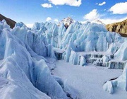 冰川流动在陡坡段,冰体呈坠落或滑落状态,形如瀑布,称为冰瀑布。四川贡嘎山海螺沟冰川冰瀑布是我国已知最大的冰瀑布,高1080米,宽500-1100米。