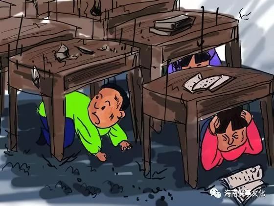 ★正在教室上课、工作场所工作、公共场所活动时,应迅速包头、闭眼,在讲台、课桌、工作台和办公家具下边等地方躲避。
